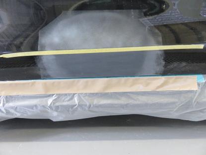 調色作業の後、ゴミやほこりがシャットアウトされた塗装ブースの中にアウディTTを入れマスキングをしたら塗装前の準備が完了です。 |