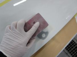 赤外線乾燥機で60℃×20分強制乾燥後、320番のペーパーで空研ぎします。 |