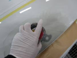 その後、800番のペーパーで水研ぎを行ってボンネット全面の下地を仕上げていきます。 |
