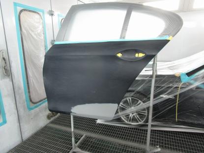 調色を行った後、塗装ブースでマスキング作業し塗装前の準備が完了です。 |