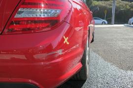 マスキングが終わって、塗装作業の直前です。この車両はナノ粒子クリアーと言われる特殊クリアーが塗装されており、弊社ではメルセデスベンツ社(メーカー)に認定されたDUPONT社のCC6300と呼ばれるクリアーを使って塗装いたします。一般的なクリアーとの見た目の違いはプロでもわからないのですが、早ければ数か月もすると違いがはっきりと表れる位、耐擦傷性に優れた特殊クリアーで再塗装致しております。坂本オート・サービスでは極力、オリジナルを忠実に再現できる工法・材料を使用して修理することを心がけております。 |