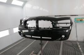 取り外したフロントバンパーとフロントスポイラーの傷をダブルアクションサンダーで平らに削り取り、サフェーサーを塗装します。 |