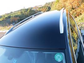 まず、必要な部品を取り外していきます。輸入車の場合、このようにルーフモールを取り外す際にルーフヘッドライニング(天井の内張り)を外さなくては取り外せない構造になっているお車が非常に多いです。また、ルーフを作業する際は、フロントガラスの脱着もなるべく塗装直前まで外さないで作業します。なぜなら、すぐに取り外すと車内にホコリや汚れが付いてしまったりするリスクを最小限にするためです。 |