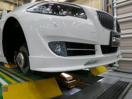 今回は追加作業でBMW定番の3Dデザインのフロントリップスポイラーの取付塗装もご用命頂きましたので、フィッティングします。 |