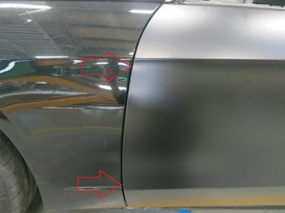 矢印で示したような所を中心に隙間や高さを微調整し、ドアロックを取付けてから閉まり具合を確認して板金作業が完了となります。 |