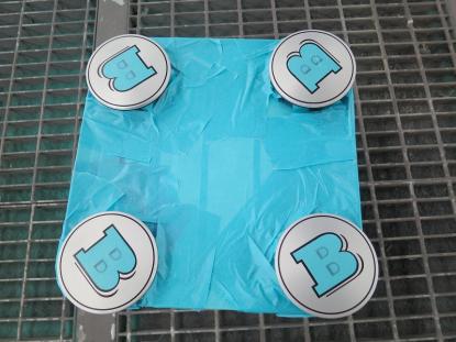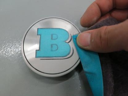 センターキャップのBマークを残して塗装するためのマスキングです。 |