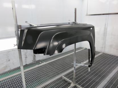新品のフロントフェンダーに2液型のカラーサフェーサーを塗装します。 |