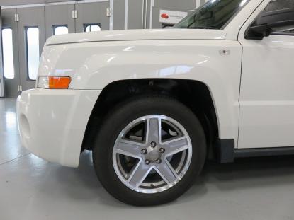 停車中に左フロント部を相手の車に擦られてしまい、傷やへこみが出来てしまった被害車両のお車の修理事例です。左フロントホイールにも損傷が見られたため、4輪アライメント測定も行いました。 |