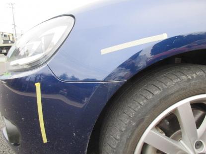 駐車中に相手の車が誤ってT様のお車に接触し左フロント部分に傷が付いてしまった為、加害者の対物保険を使って修理したお車の修理事例です。 |