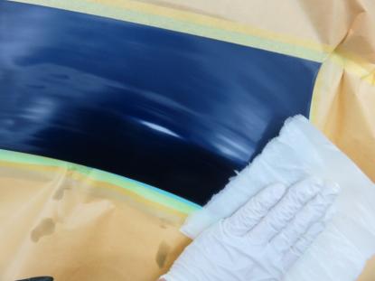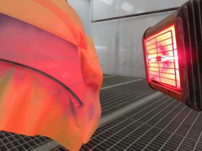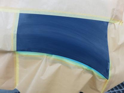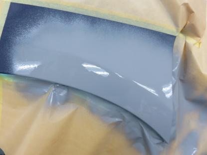 シリコンオフで脱脂後、2液型サフェーサーを塗装し赤外線乾燥機で60℃×20分、強制乾燥させます。 |