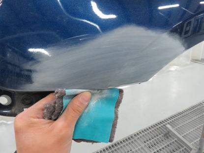 乾燥させた後、ダブルアクションサンダーで空研ぎを行います。 |
