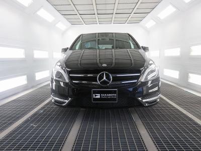 塗装乾燥ブースにメルセデスベンツB250(W246)を入れ、60℃×1時間の加熱乾燥を行います。この強制乾燥によって耐久性の高いコーティング被膜を形成することが出来ます。 |