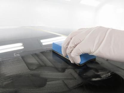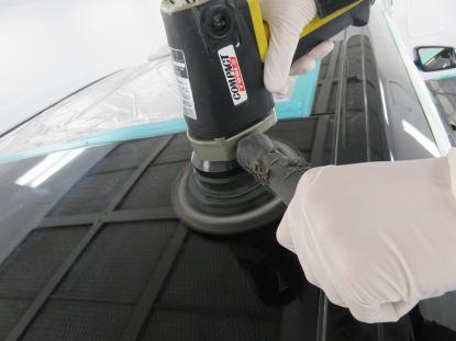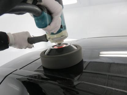 磨き作業です。ボディコーティングを施工する作業工程の中で最も重要であります。 |