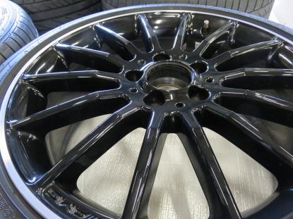 続いてホイールコーティングです。付着している汚れやブレーキダストを洗剤で水洗いし裏面はもちろんですがタイヤまで手を抜かず掃除していきます。 |