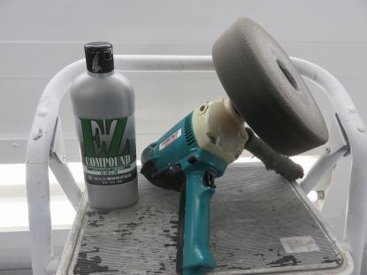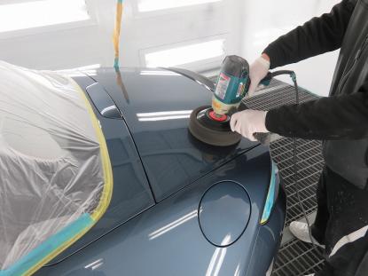 極細目のコンパウンドを付けたスポンジバフでボディ全体を磨きあげていきます。 |
