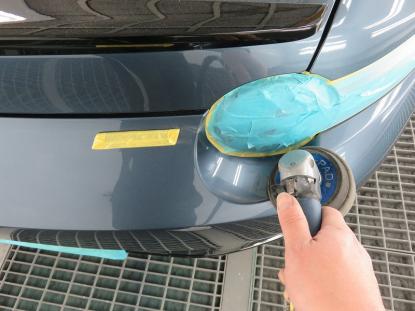 続いて、ポリッシャーとコンパウンドを取り替えてさらに磨き上げていきます。 |