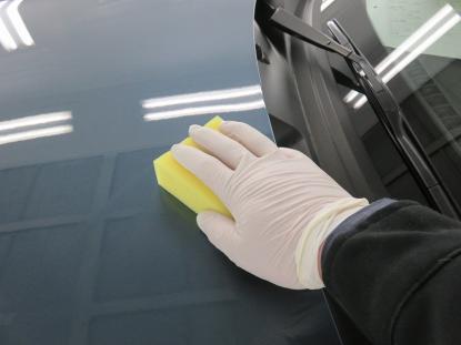 幌を除くボディ全体をシャンプー洗車した後、トラップ粘土や特殊タオルを使い鉄粉や汚れを落とします。 |
