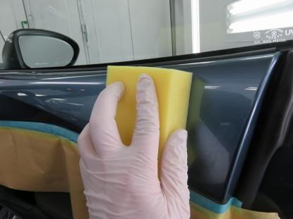 コーティング剤はボディ表面だけでなく、ドアの内側部分に至るまで、すみずみまで塗りこんでいきます。 |