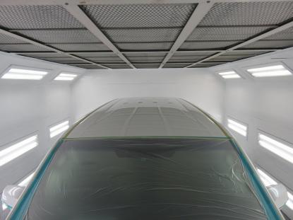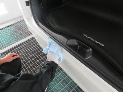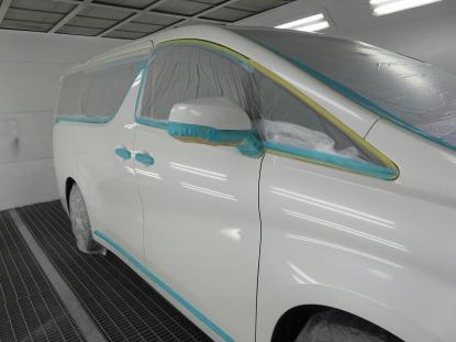 コーティグ剤を拭きあげた後、塗装乾燥ブースにアルファード(30系)を入れ、60℃×1時間の加熱乾燥を行い完成となります。 |