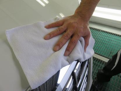 ボディ全体をシャンプー洗車した後、トラップ粘土や特殊タオルを使い鉄粉や汚れを落とします。 |