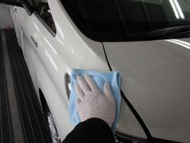 新車の状態ですが、ボディ全体をシャンプー洗車してからトラップ粘土や特殊タオルを使い鉄粉や汚れを落としていきます。