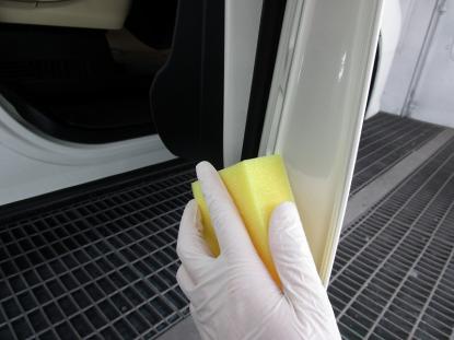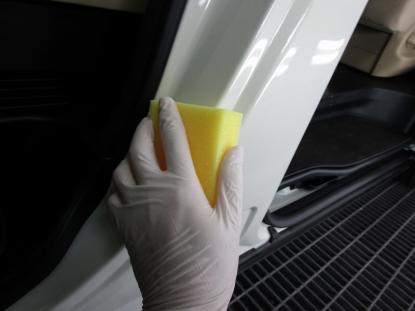 コーティング剤はボディの表面はもちろんですが、グリルやドアの内側部分に至るまで、すみずみまで塗りこんでいきます。
