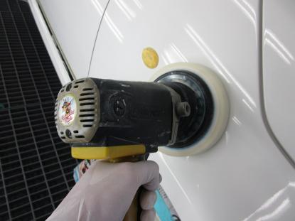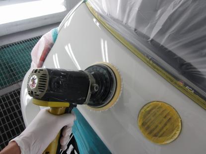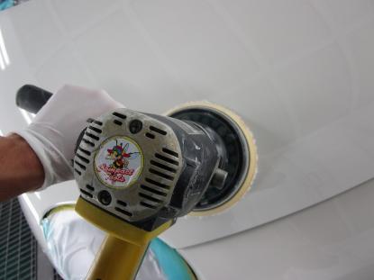 磨き作業に移ります。各工程ごとにポリッシャーやコンパウンドを取替えてボディ全体を磨きあげていきます。