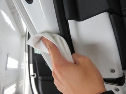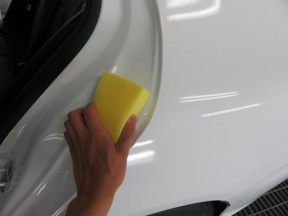 コーティング剤はボディ表面だけでなく、ドアの内側部分に至るまで、すみずみまで塗りこんでいきます。