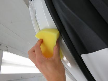 ボディの細部まできっちり貼ることによって、磨き作業の際に出るコンパウンドのカス等の汚れを最小限にすることが出来ます。