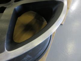 リムの部分に塗装の段差がありますので削って平らに仕上げていきます。 |