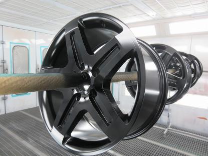 車両からホイールを取り外し、タイヤも脱着して作業の準備をします。 |