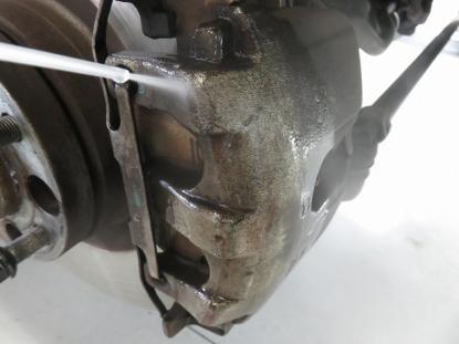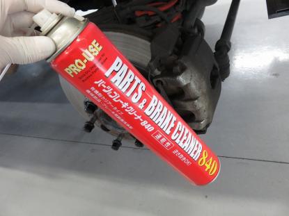 ホイールを取り付ける前にブレーキキャリパー周辺の汚れを掃除します。せっかく綺麗になったホイールなのにちらっと見えるキャリパーが汚いのは残念ですよね!このひと手間を惜しまないのが坂本オート・サービスのこだわりでもあります。 |