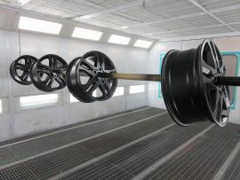 十分に脱脂を行い、専用の台にセットしたら塗装前の準備が完了です。 |