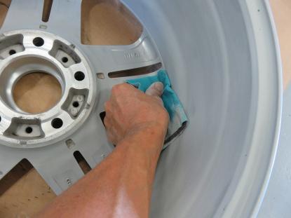 裏側やセンターキャップも手抜きせず、確実にサンディングします。 |