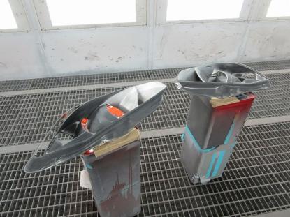 塗装ブースにパーツを入れ、脱脂を行ったら塗装前の準備が完了です。 |