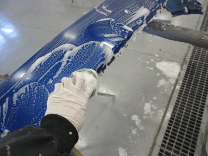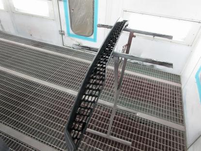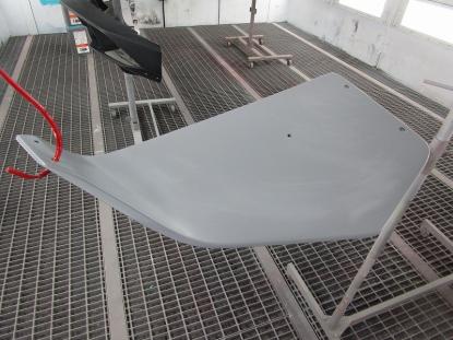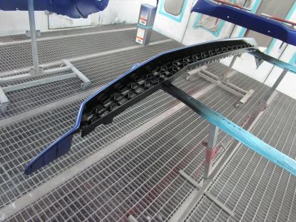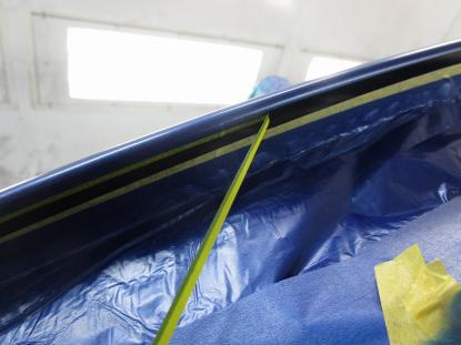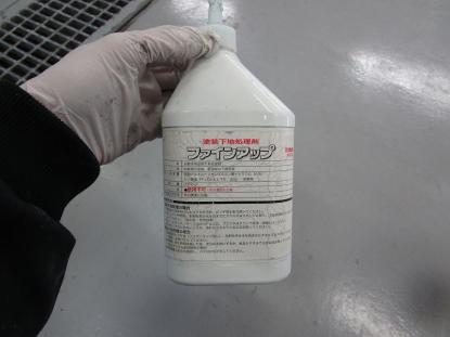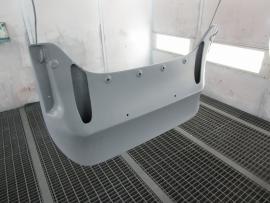 塗装ブースで2液型のサフェーサーを塗装します。 |