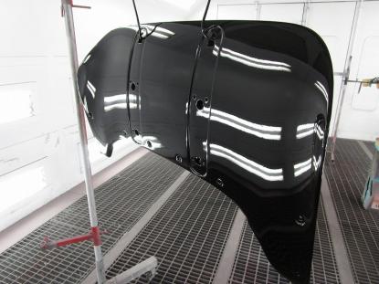 グロスブラック(艶ありの黒色)で塗装が終わりました。表も裏もツルツルピカピカです。 |