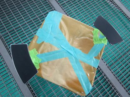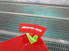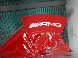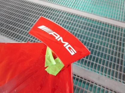 ロゴ入れです。表面をサンディングしてからAMGロゴを貼り付け、その上からクリアーを塗装します。 |