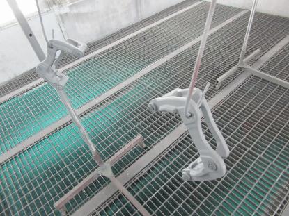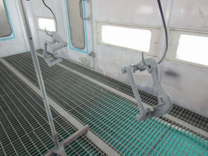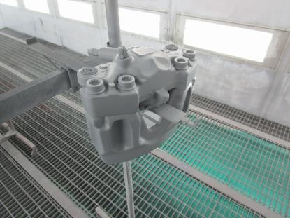 清掃してから、専用の台にセットします。その後、脱脂を行ったら塗装前の準備が完了です。 |