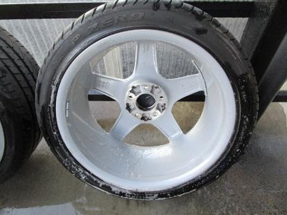 綺麗に塗装されたブレーキキャリパーですので、ホイールの内側もきっちり掃除をしてからボディに取り付けていきます。 |