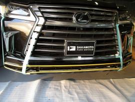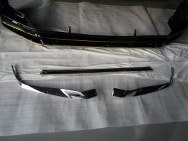 フロントバンパースポイラーはモデリスタを取り付けます。メッキ部分はラッピングフィルムで黒くするため、分解しておきます。 |