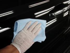 コーティング剤を塗った塗装の表面が白く濁った状態になるまで時間を置いてから、専用のクロスで拭き上げてボディコーティングの完成です。 |