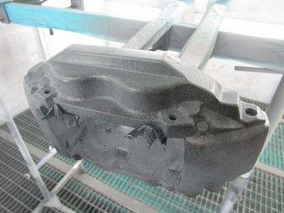 サンディング後、ブレーキキャリパーを台にセットしたら塗装前の準備が完了です。 |