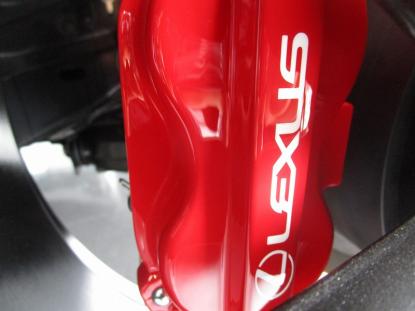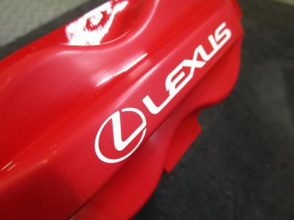 キャリパー本体は耐熱の赤色で塗装し、レクサスのロゴは白色で施工しました。 |
