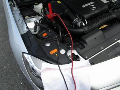 最後にヘッドライトのコーディングです。ヨーロッパ仕様のライト設定にするため、メルセデスベンツ専用のテスターを使い、コンピューターの中のプログラムを書き替えていきます。 |