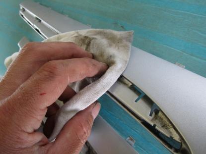 フィルムを貼る前に、隙間に詰まった汚れを取り除いていきます。 |