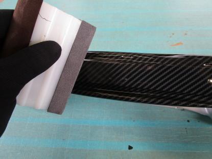 フェルト付きのヘラで、フィルムに傷がつかないよう注意して空気を抜いていきます。 |