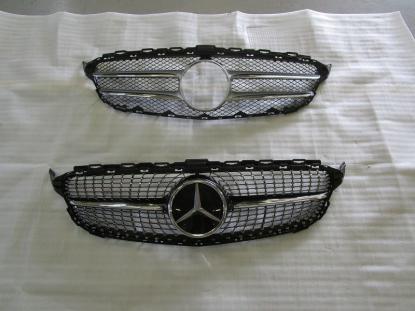 千葉県旭市にお住まいのT様よりカスタムのご依頼でメルセデスベンツC180(W205)のご入庫です。フロントバンパーのメッキ部分とリヤディフューザーをカーボン調のフィルムでラッピングや、フロントグリルをs.d.fオリジナルダイヤモンドグリルに交換してほしいとのご要望です。