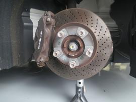 ブレーキキャリパーのイエローが、よりかっこよく見えるように取り外したホイールの裏側の清掃も行います。せっかくキャリパーが綺麗に塗装出来てもホイールの裏側が汚れていると、残念ですよね。坂本オート・サービスでは、そんなちょっとした気付きがとても大切なことだと考えて作業しております。 |