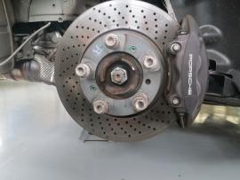 コーティング剤をすみずみまで塗っていきます。その後、コーティグ剤を拭きあげた後、いつも通りサイマ社製の塗装乾燥ブースにポルシェ911を入れ、60℃×1時間の加熱乾燥を行います。この熱処理により、コーティング被膜をしっかり硬化させることできます。 |